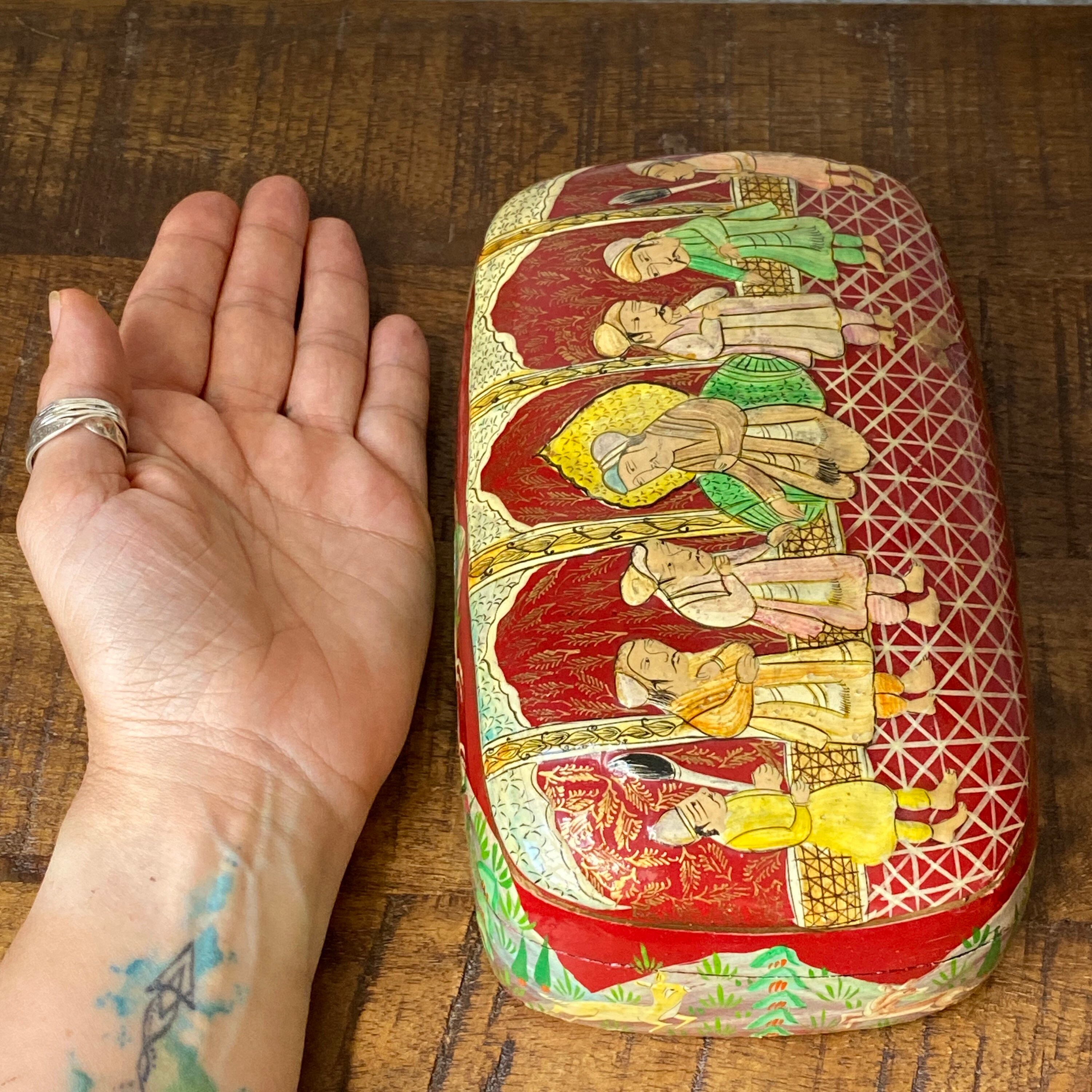 Antique Vintage Lacquer Box Hand Painted With Mughals Etsy Uk