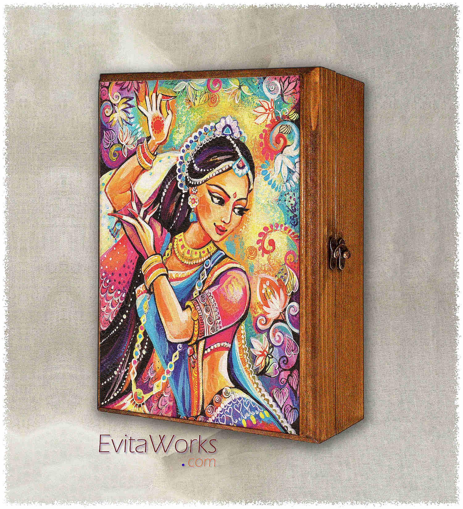 Indian Dancer Woman On Natural Wooden Box Henna Tattoo Mudra Etsy Uk