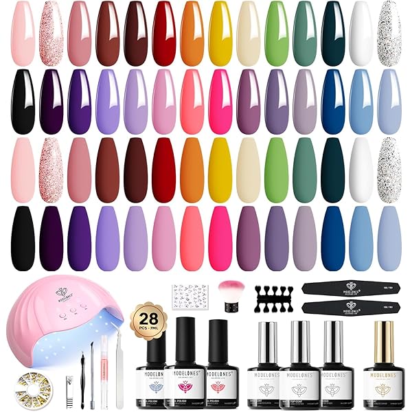 Amazon Com Modelones 32 Colors Gel Nail Polish Kit With U V Light Gel Nail Polish Set 48w Nail Dryer Base Top Coat 4 In 1 Glue Gel Bond Primer Blooming Gel Nail Tips Integrated Manicure Tools Nail Art Diy Gift For